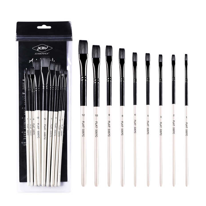 New Artist Paint Brushes 9 Pcs Acrylic Watercolor Oil And Gouache Different Size Brushes With Black White Handle Buy New Artist Paint Brushes 9 Pcs Acrylic Watercolor Oil And