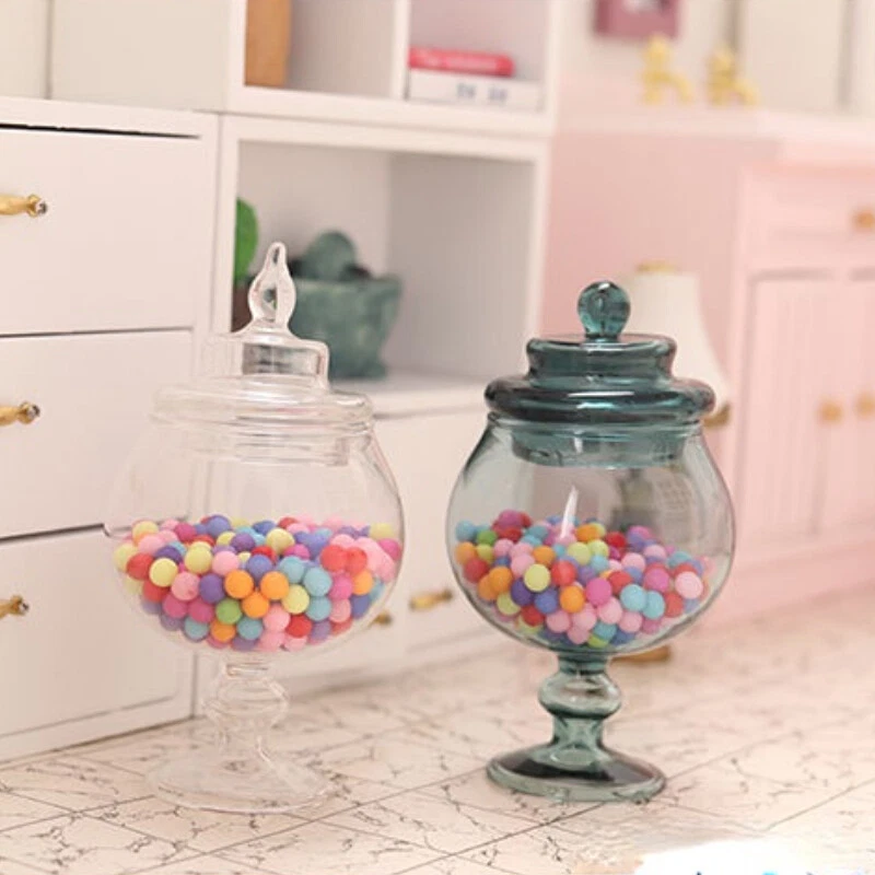 1 12 Scale Dollhouse Miniature Candy Glass Jars Clear Storage Bottles Kitchen Ebay