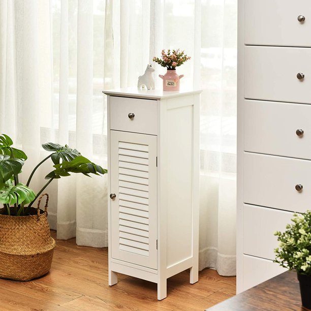 Giantex Bathroom Floor Cabinet Wooden Side Storage Cabinet With Single Shutter Door And Inner Adjustable Shelf Equipped With Anti Toppling Fitting 13 X 12 X 34 5 Inches White Walmart Ca